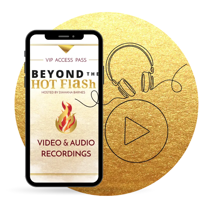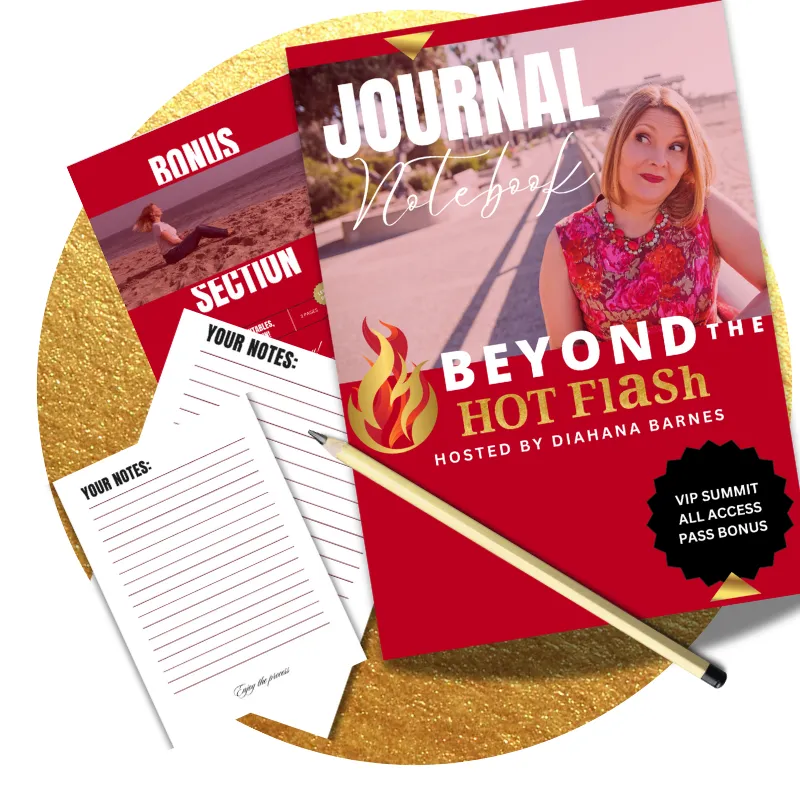 Our done-for-you notetaking Beyond the Hot Flash Journal notebook with bonus sections so that you can easily jot down and keep track of all the juicy goodness and implement right away!